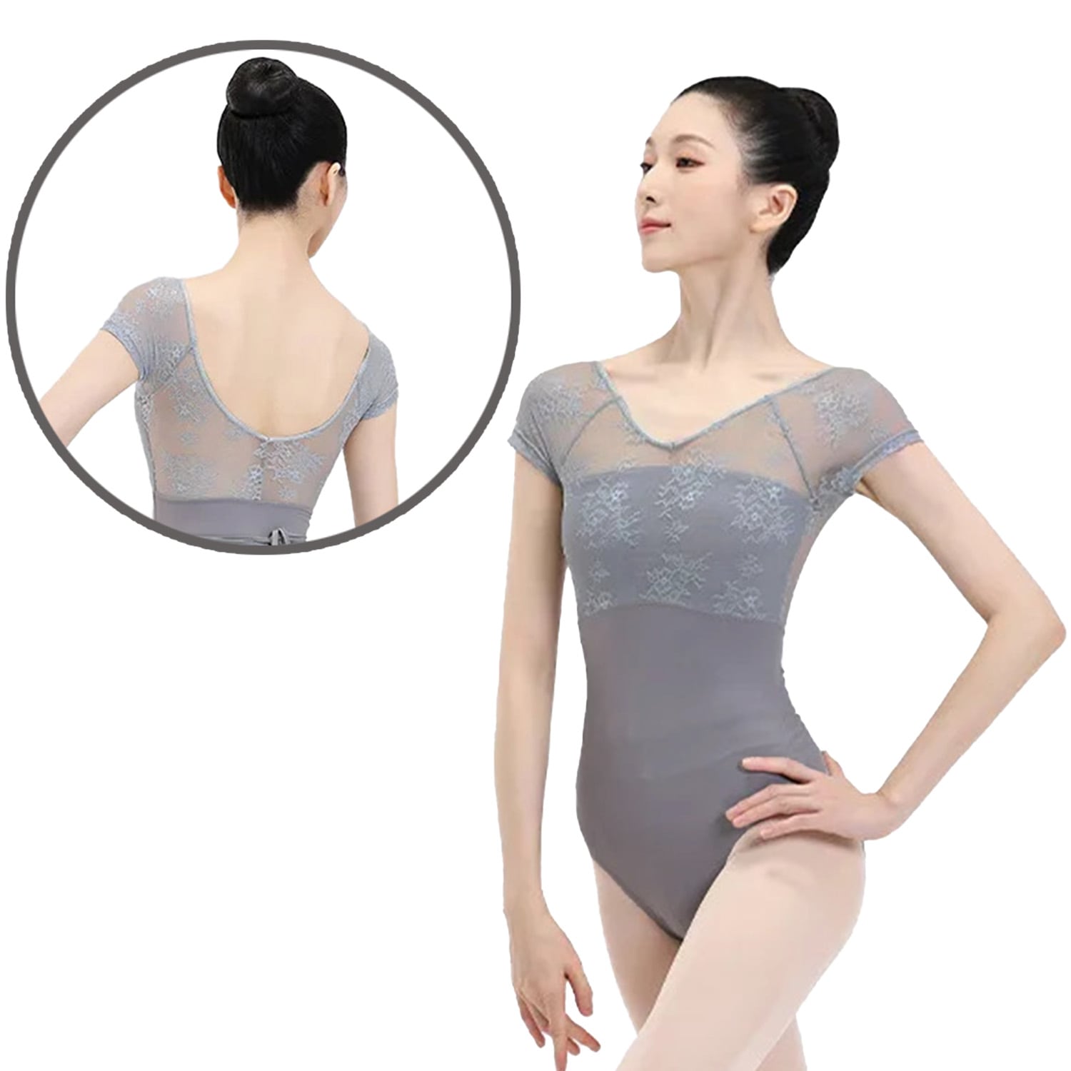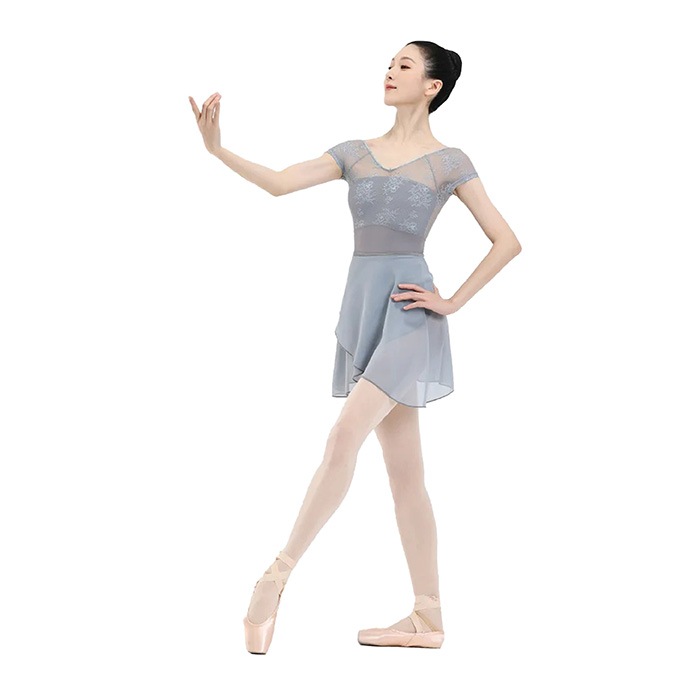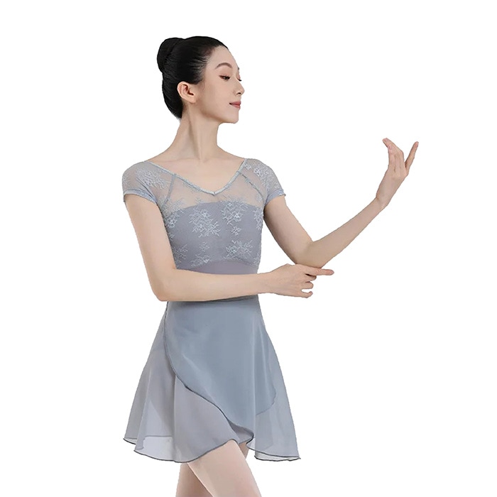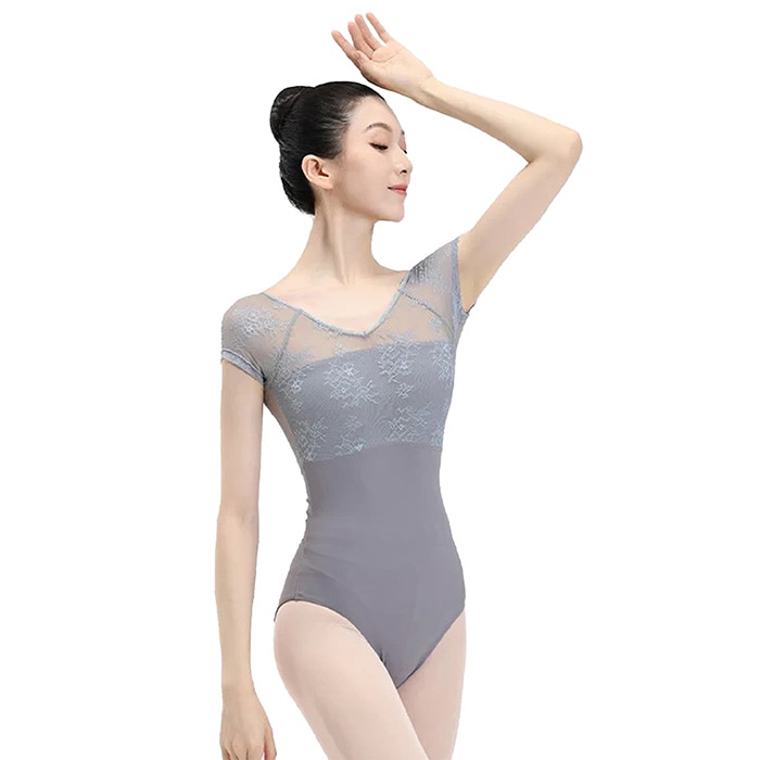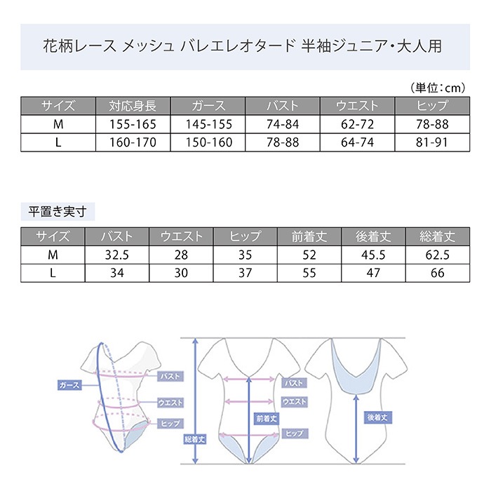 花柄レース メッシュ バレエレオタード 半袖 ジュニア・大人用 |