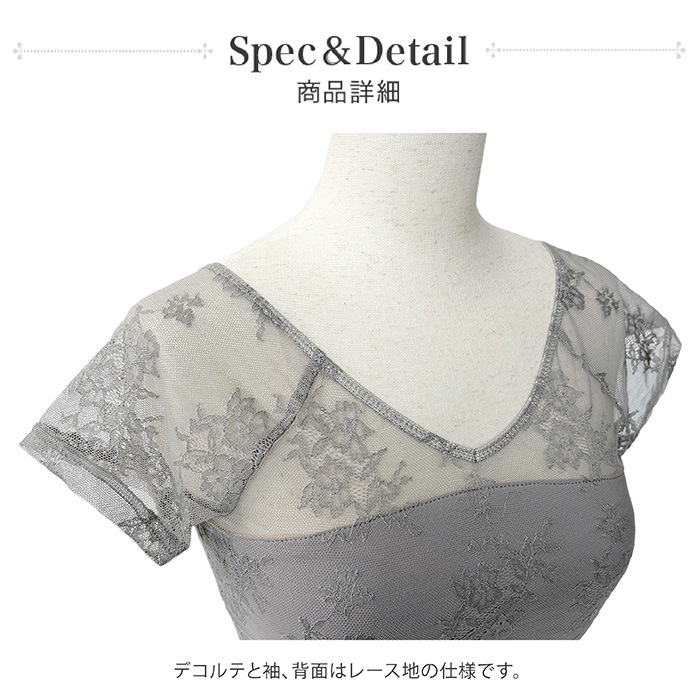デコルテはゆるやかな V カットですが胸元の開きは控え目です。