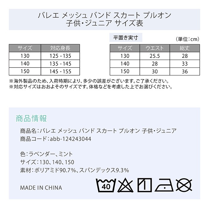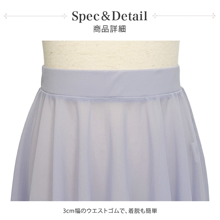 【サイズ交換無料】すっきり可憐な色合いが美しい、子ども用のゴムスカート♪ウエストがゴムで着脱簡単◎軽やかなメッシュ生地をふんだんに使用し回れば綺麗に広がります!こども バレエ メッシュ バンド スカート プルオン 子供 キッズ 子ども ジュニア ウエストゴム プルオンスカート メッシュスカート 可愛い ストレッチ 伸縮 パープル ライラック ラベンダー ミント グリーン 緑 レッスン 練習 着 125 130 135 140 145 150 155 |