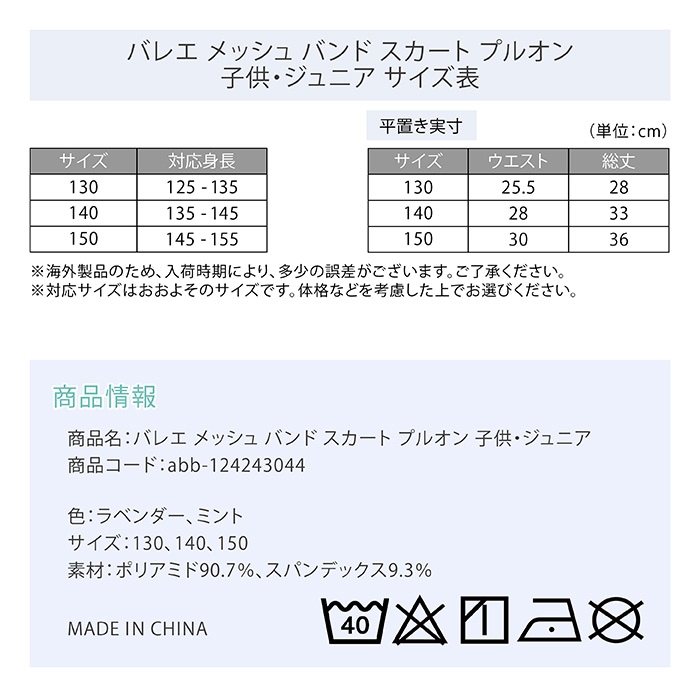 バレエ メッシュ バンド スカート プルオン 子供・ジュニア |